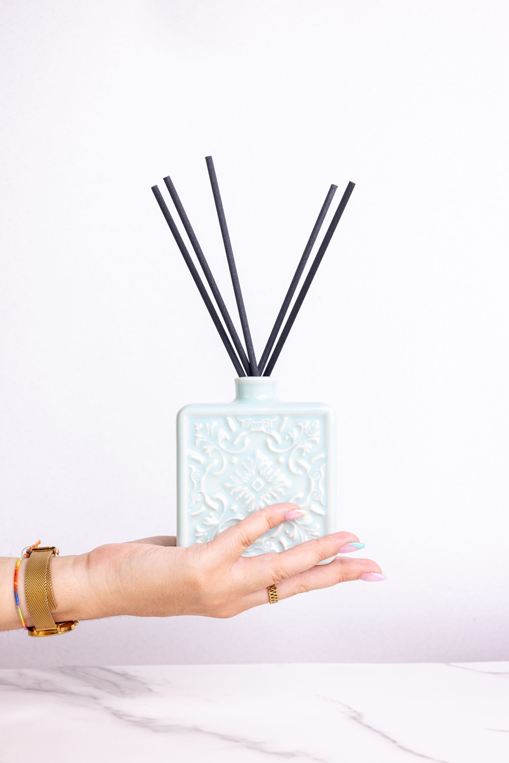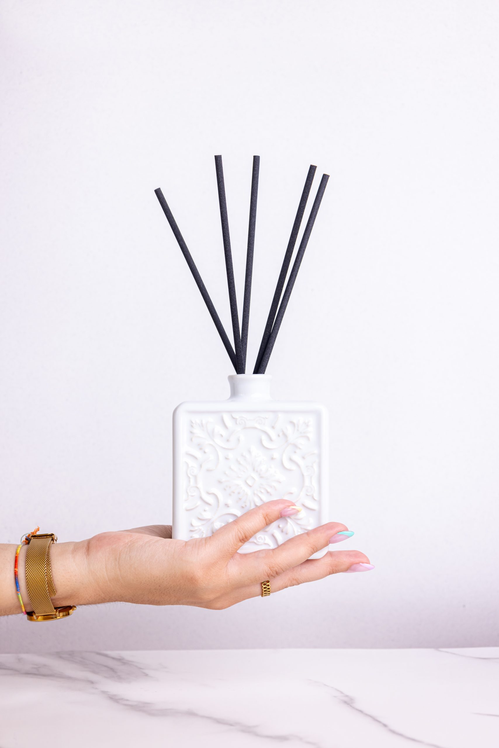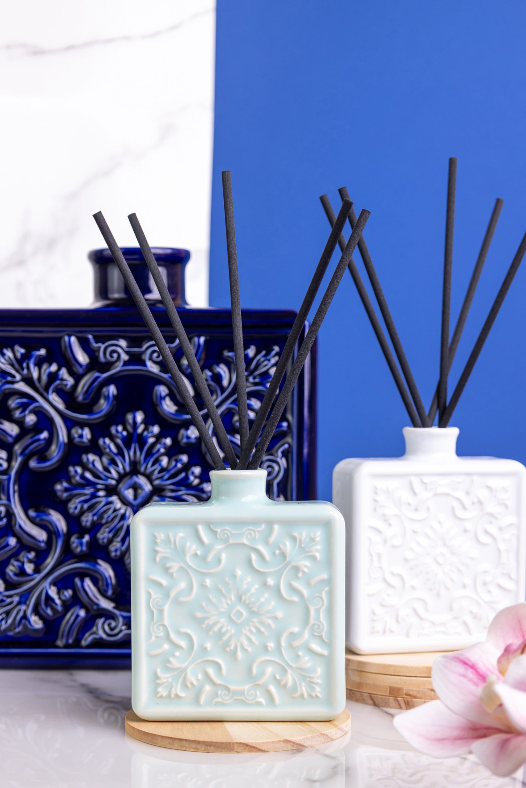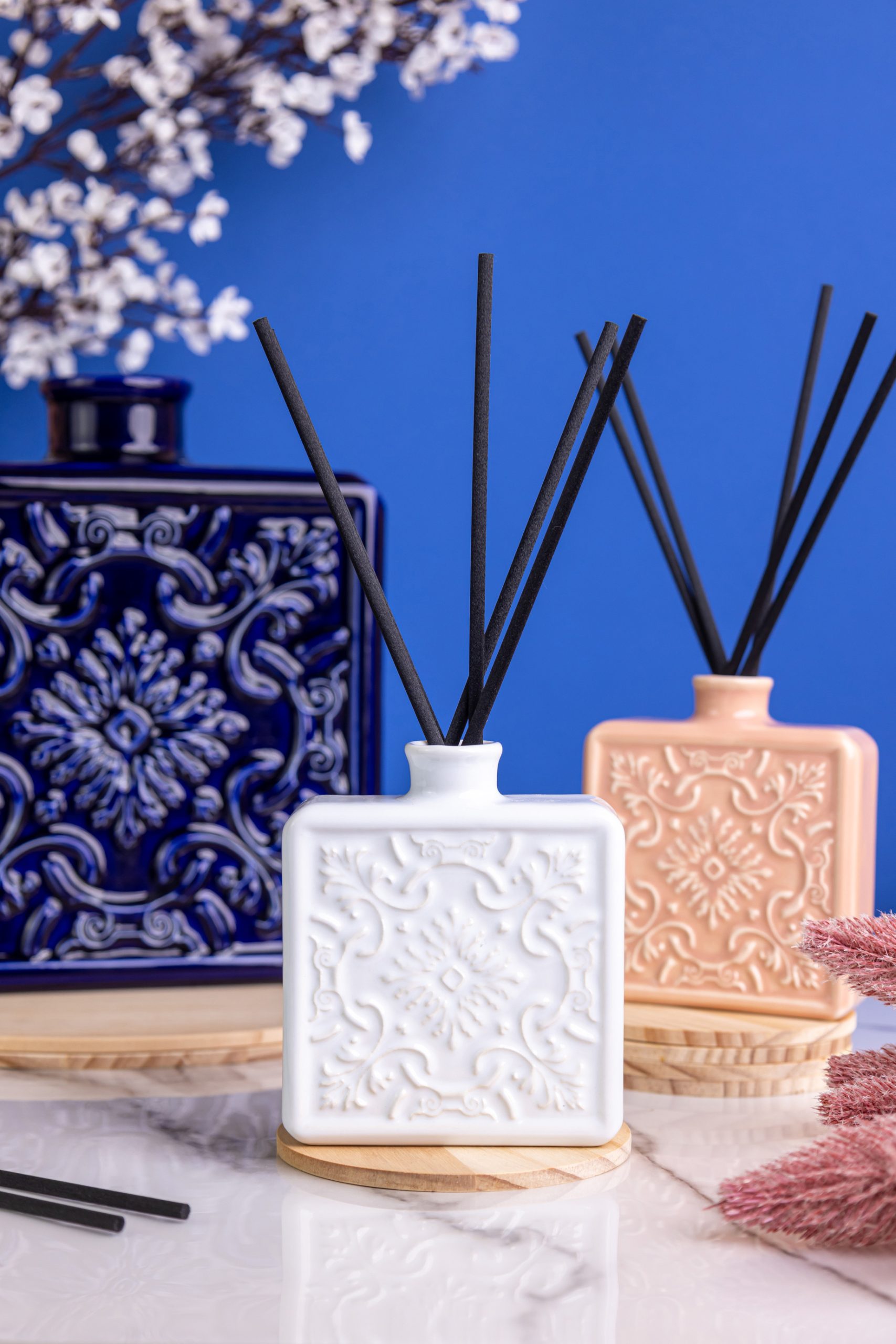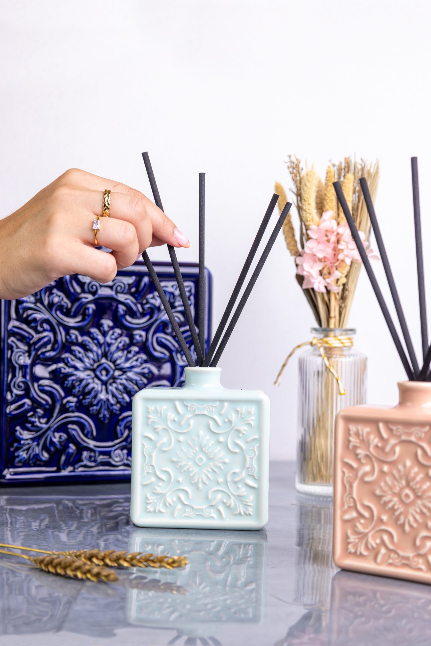 O resultado final mostra a essência e elegância dos produtos em imagens e vídeos onde cada detalhe foi cuidadosamente pensado para realçar a beleza e funcionalidade dos difusores.